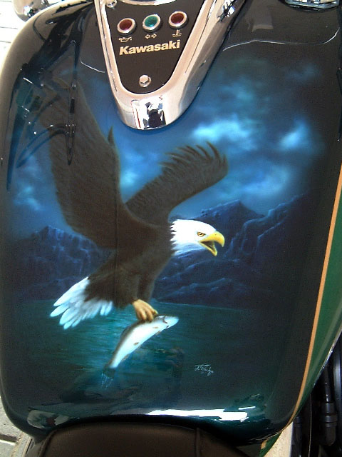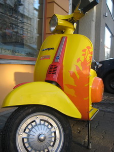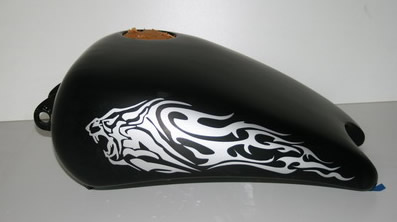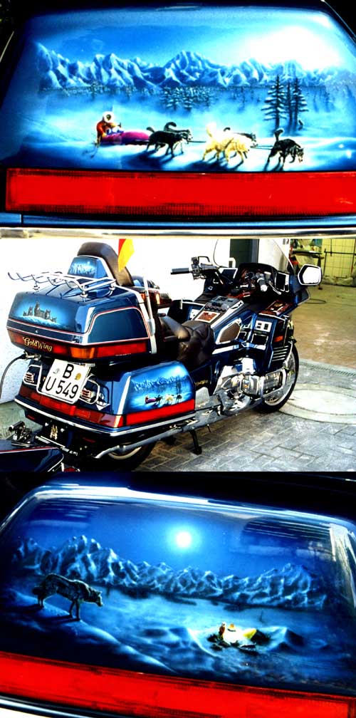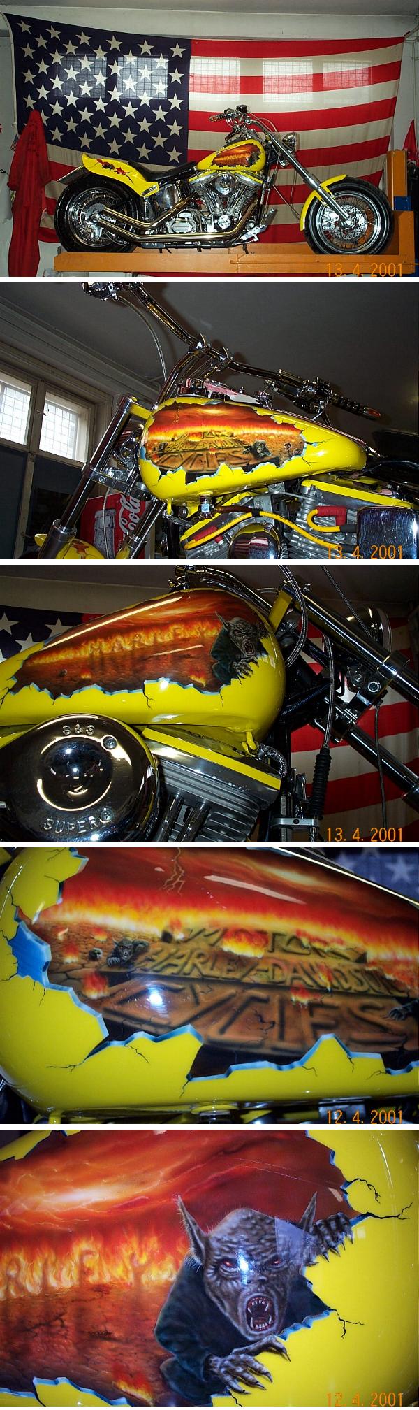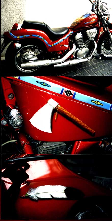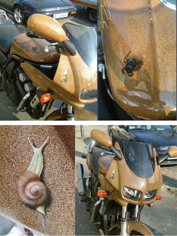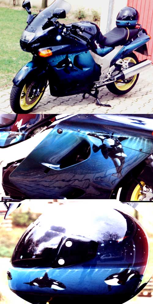 Teil 2 .....nach diversem Abkleben und Lackieren....war es vollbracht. Das Motorrad erstrahlte im neuen Glanz, bereit für die Crashaufnahmen um danach wieder auf dem Schrott zu landen. |